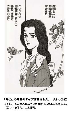 1年前、NANASE さんのアリー掲示板で「アリーの日本語訳って直訳だよね〜」とかめっが調子にのって話していた時に「それはちがうよ」とレスされたのが初対面の さとひろさんでした。それは反論というようなものでなく表現の仕方にかんするアドバイスだったのですが(でも鋭いツッコミ)、文章になんとも言えない暖かい人柄を感じて・・・中学の時の英語の先生(かめっを英語好きっこにしてくれた先生)に似てたので、「あ〜、先生だ〜」と思い込んだのでした。それ以来、「鋭い」と「暖かい」がさとひろさん理解への2つのキーワードになりました。そして、それはまだ裏切られていません。さとひろさんはアメリカの情報をよく掲示板に提供してくださるのですが、表面的な社会現象だけでなく、その背景へのご理解も感じられて「深いな〜」と思わされることがしばしばです。(←かめっがこう批評するのは失礼ですが)。たとえばビリーの「中年の危機」に関する書き込みで・・・「女性尊重セミナー」の背景には、成人後に直面した社会変化(フェミニズムの定着)に自分の価値観をうまく適応させきれない人が全米に大勢いる、というあの世代の男性特有の悲劇があるのですが・・・そういうことを他人事でなく、同じ人間の痛みとして語ってくださるのが さとひろさんです。こういう暖かい視線というのは、企業の駐在員としてアメリカにいたからといって獲得できるものではないと思うんですよねえ。。(さとひろさん一人のワンマン・オフィスだったのでアメリカの幅広い階層の方と交際されたのだろうな、という想像はつきますが)。 そういうわけで、かめっが大好きな さとひろさんです。さとひろさんの過去の書き込みを関連トピックごとに整理したら、エッセイ集のようになりました。 このページは、「聞き取り挑戦!」の掲示板の“お仲間”を紹介する企画です。今回は、題材がすでに手元にそろっていた方のページを第1弾として作成させていただきました。(かめっが好きな順番!ていうわけではないよ!)。第2弾、第3弾の際にはご協力よろしくね! | ||||||||||||||||